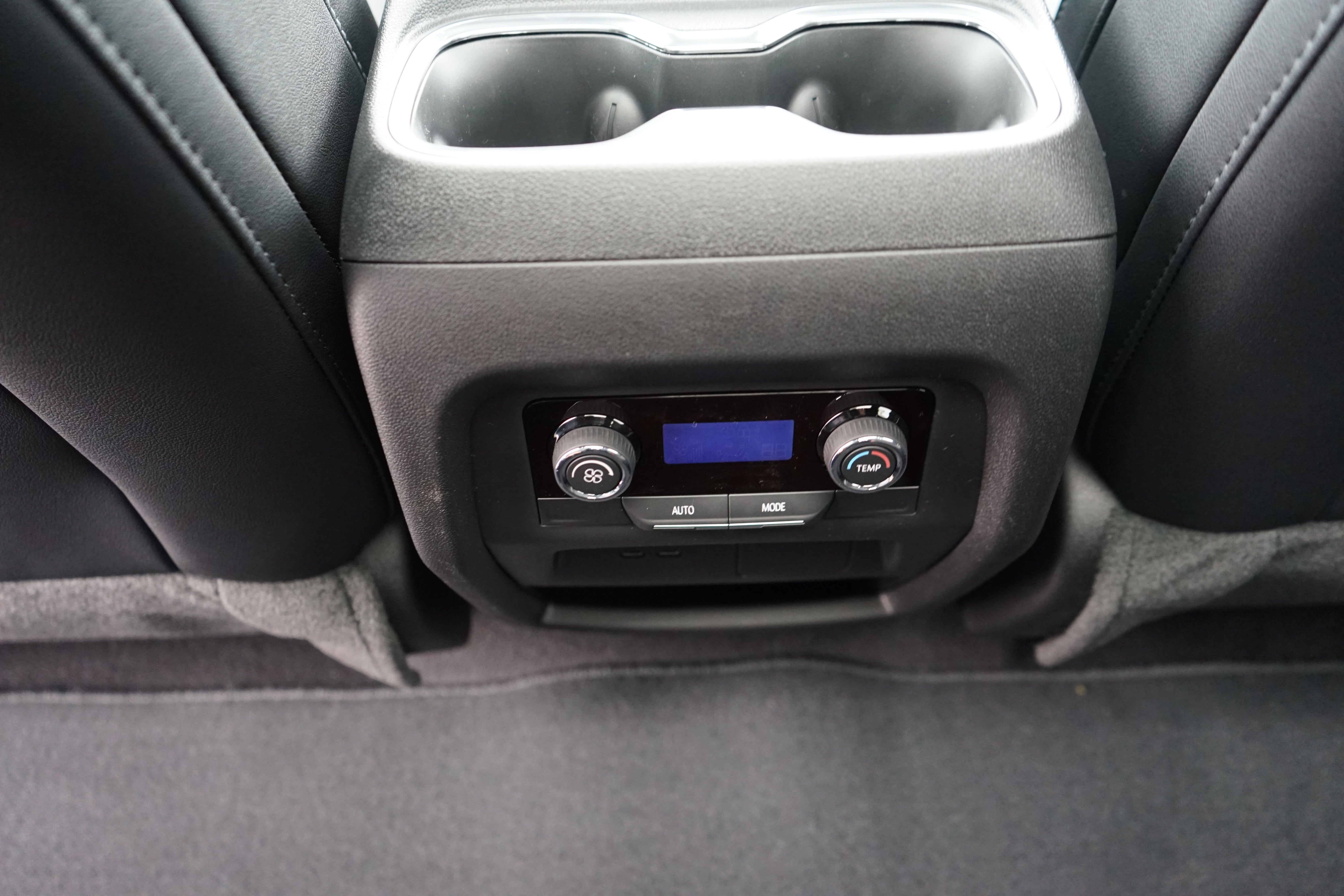 - Auxiliary controls in the rear of the cabin include air delivery mode and temperature up/down settings