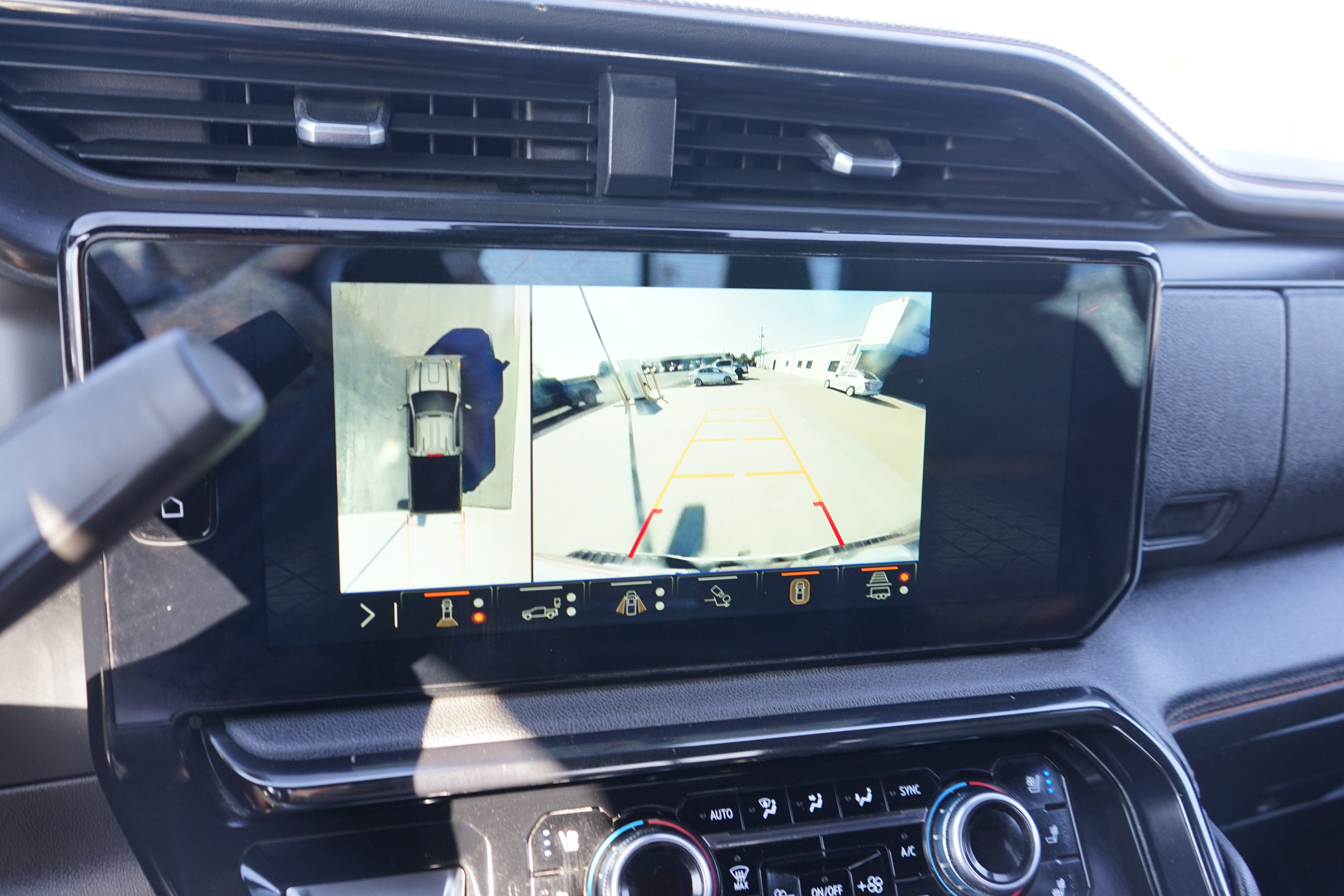 - Allows driver to see inside the cargo bed on the infotainment display to help with 5th wheel or gooseneck hitching and to check cargo